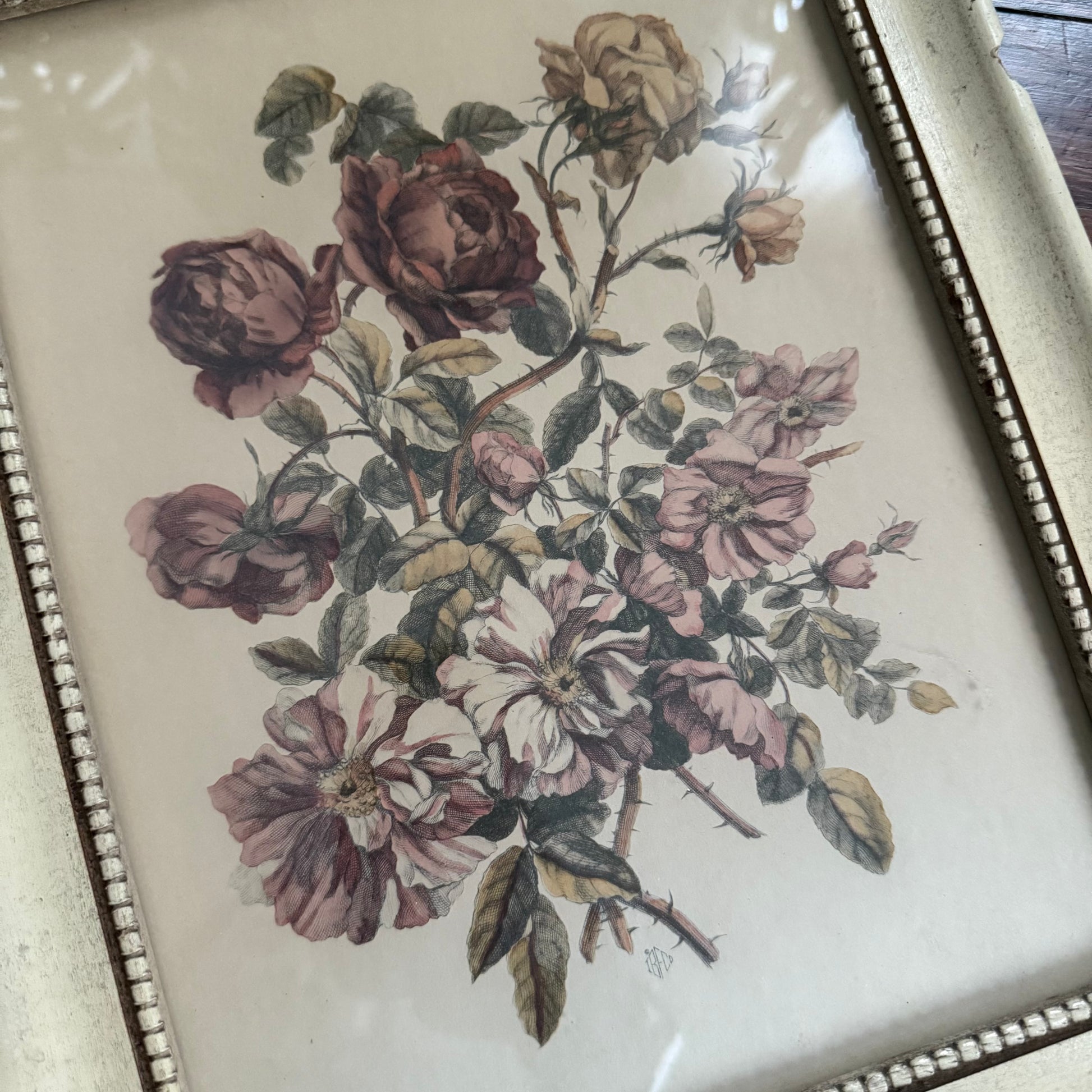 framed antique purple floral print