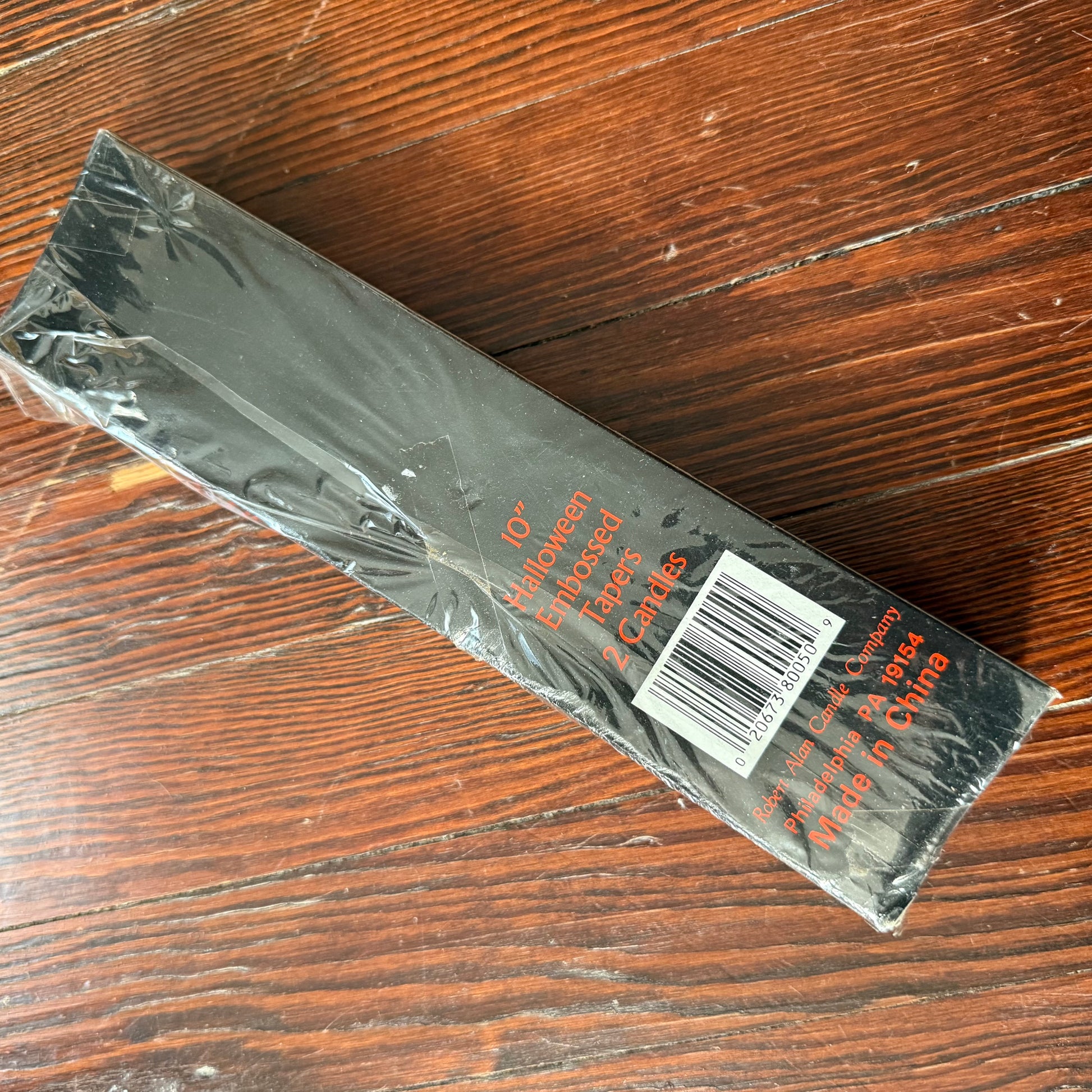 vintage black taper candles with smiling jack a lanterns. unused and in original box, cellophane has been ripped on box - so not totally sealed
