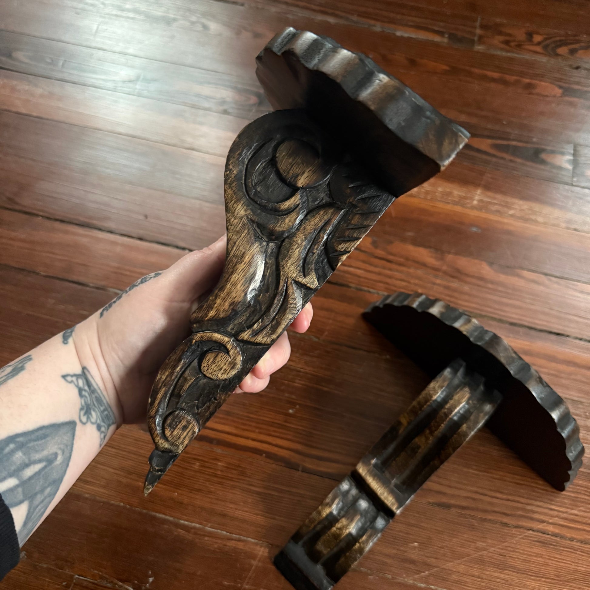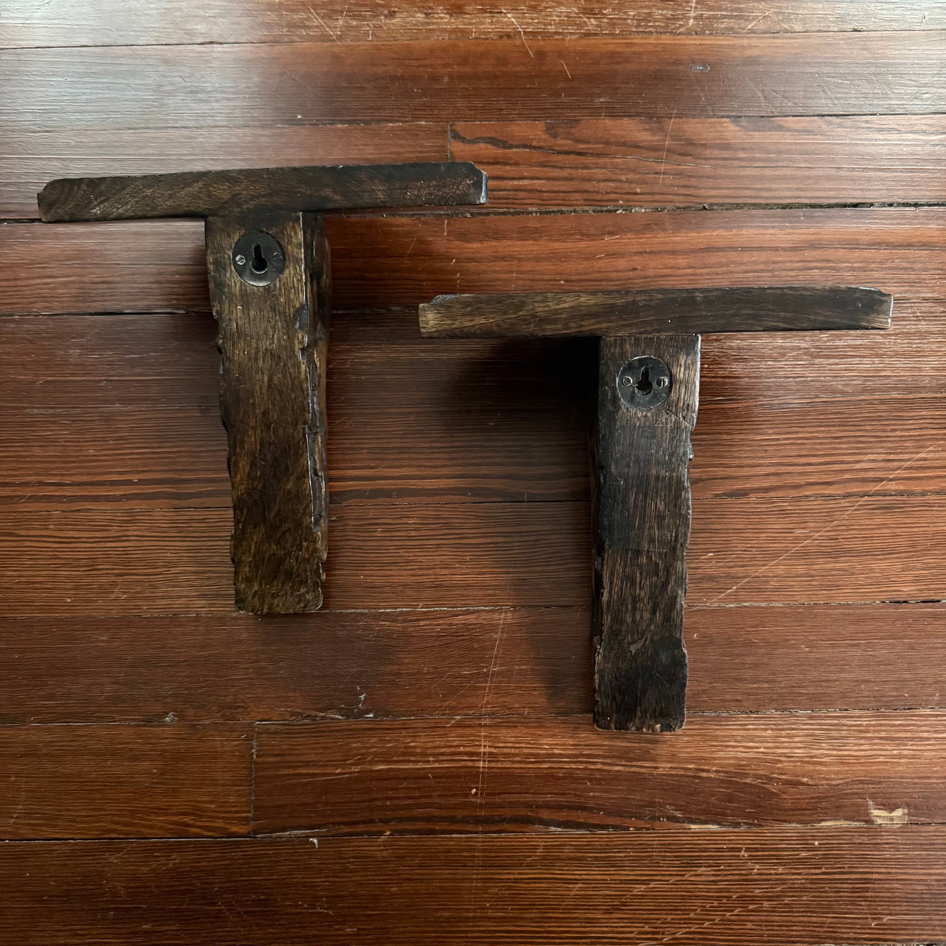 pair of carved wood wall shelves