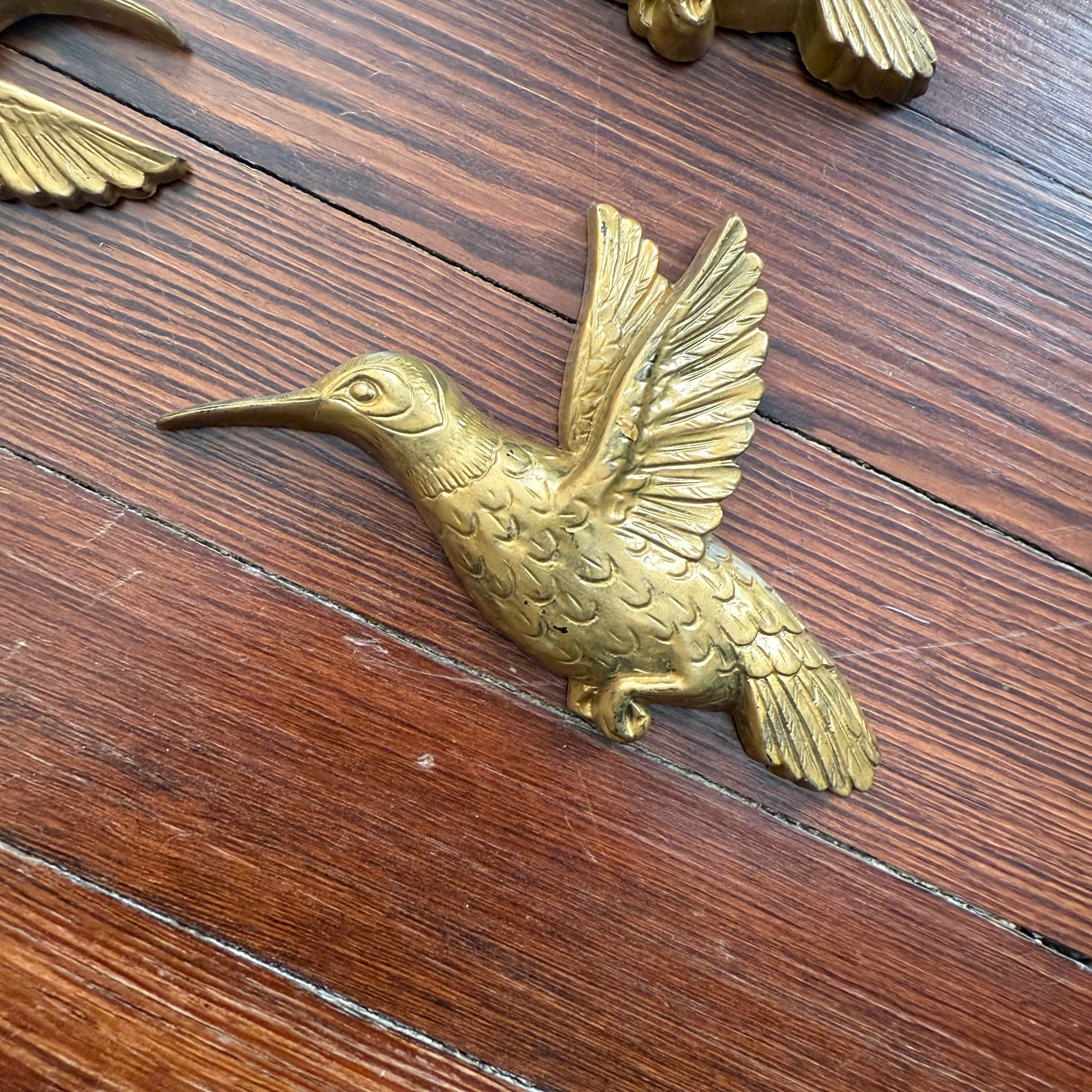set of 3 vintage mcm hummingbird plastic wall ornaments. has some light color loss as shown, but overall display very well. each measures about 5.5 inches x 3.5 inches