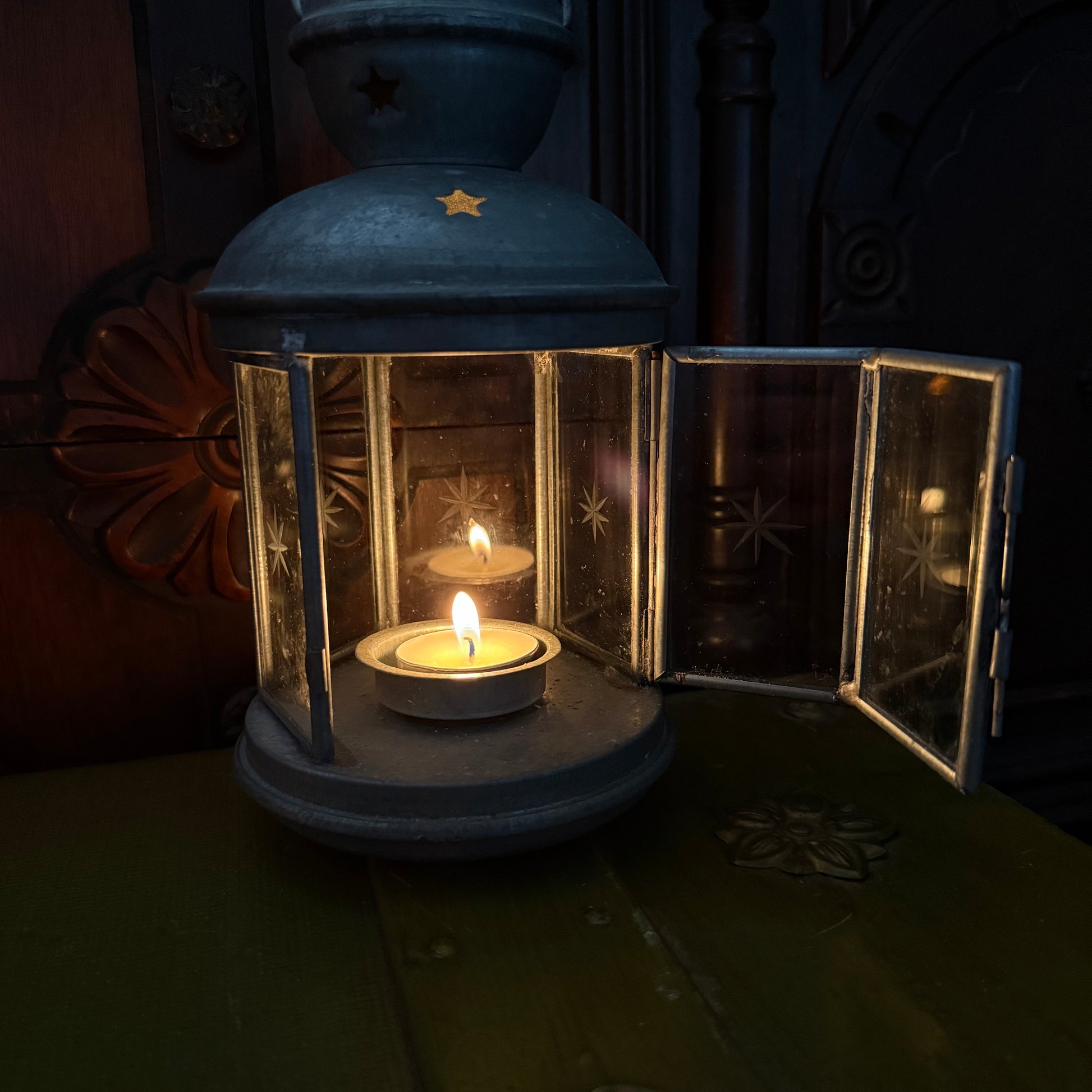 silver tea light lantern